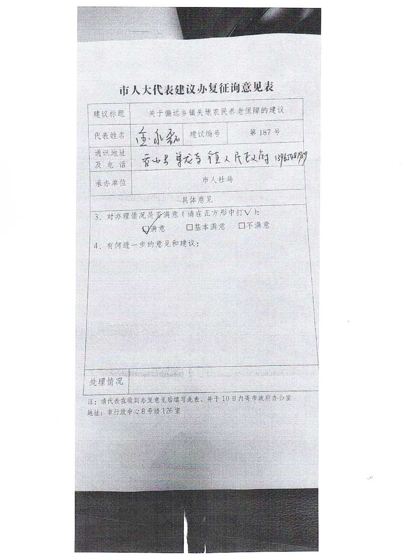 您提出的《关于偏远乡镇失地农民养老保障的建议》收悉,现将办理情况答复如下:
