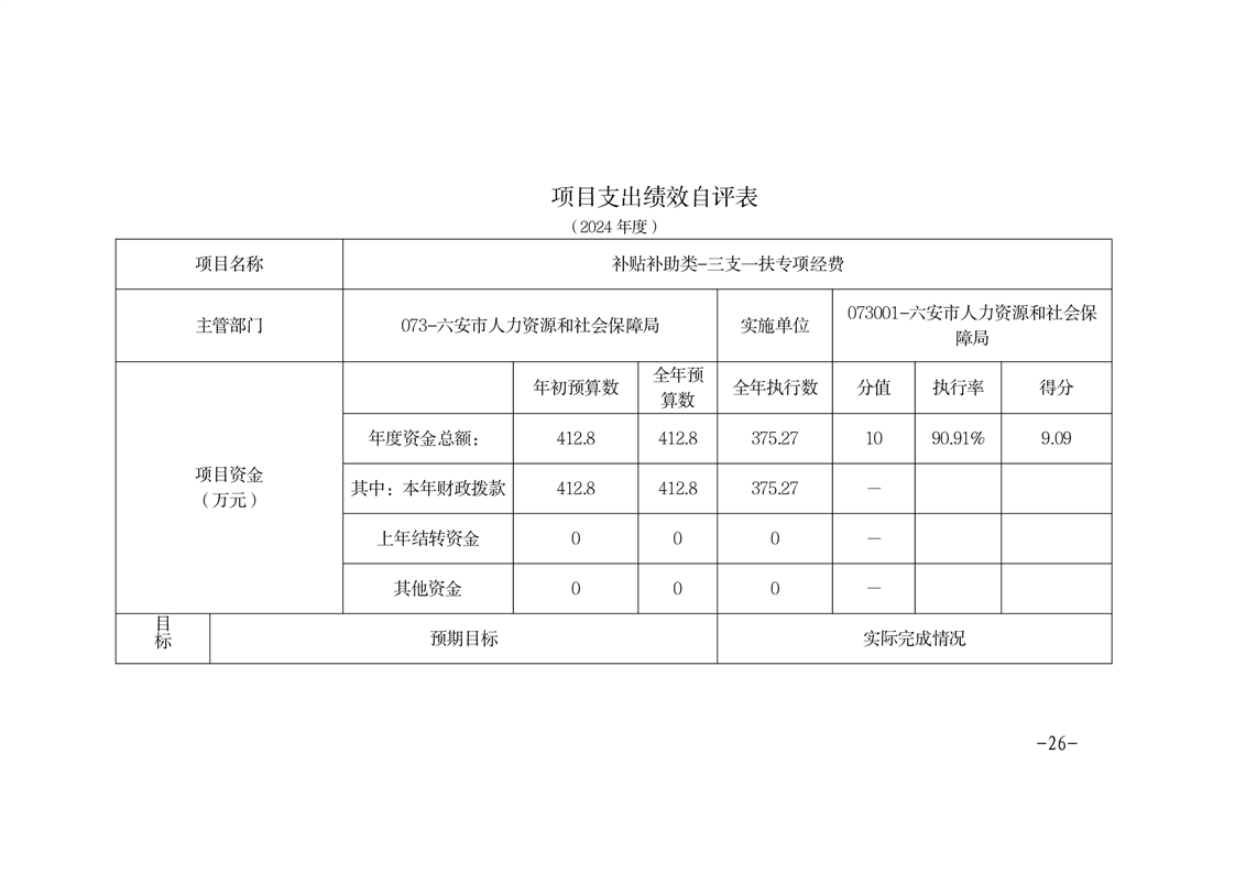 六安市人力资源和社会保障局2024年度项目支出绩效自评表.pdf
