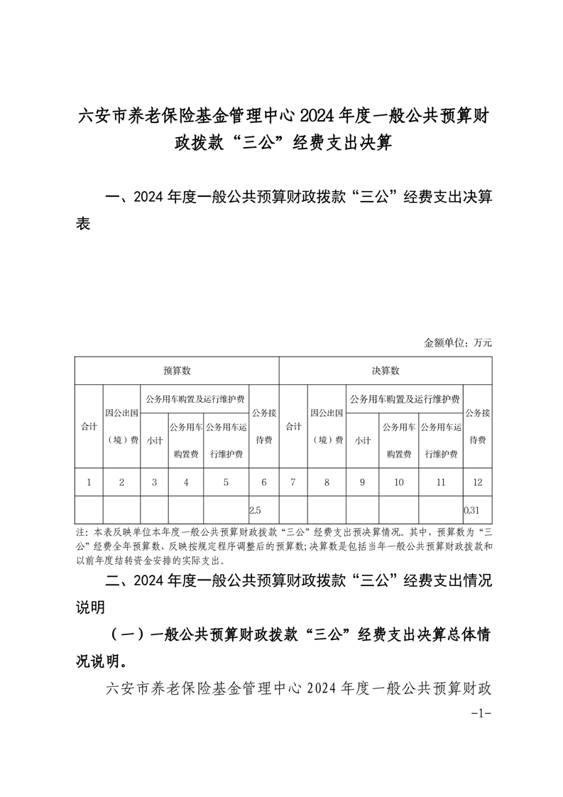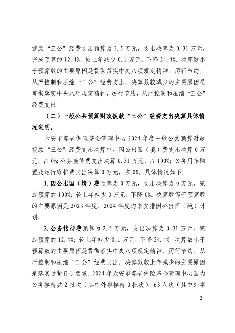 六安市养老保险基金管理中心2024年度一般公共预算财政拨款“三公”经费支出决算