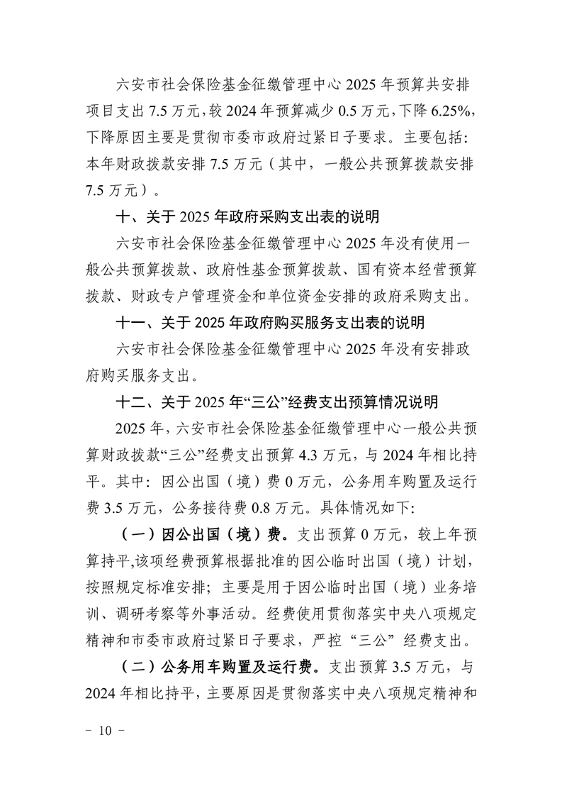 表十、六安市社会保险基金征缴管理中心2025年项目支出总表.pdf