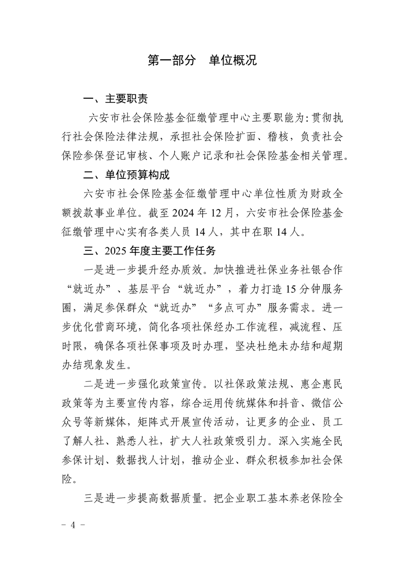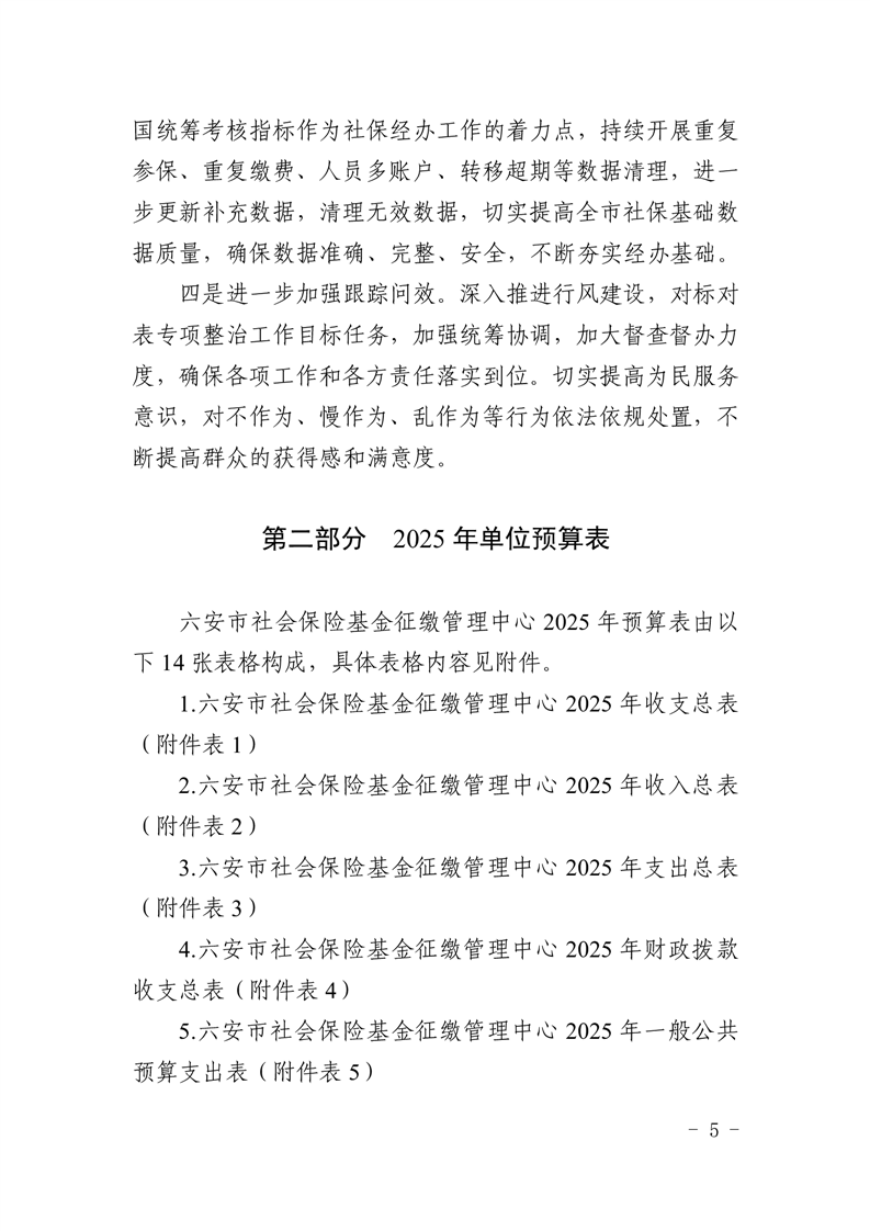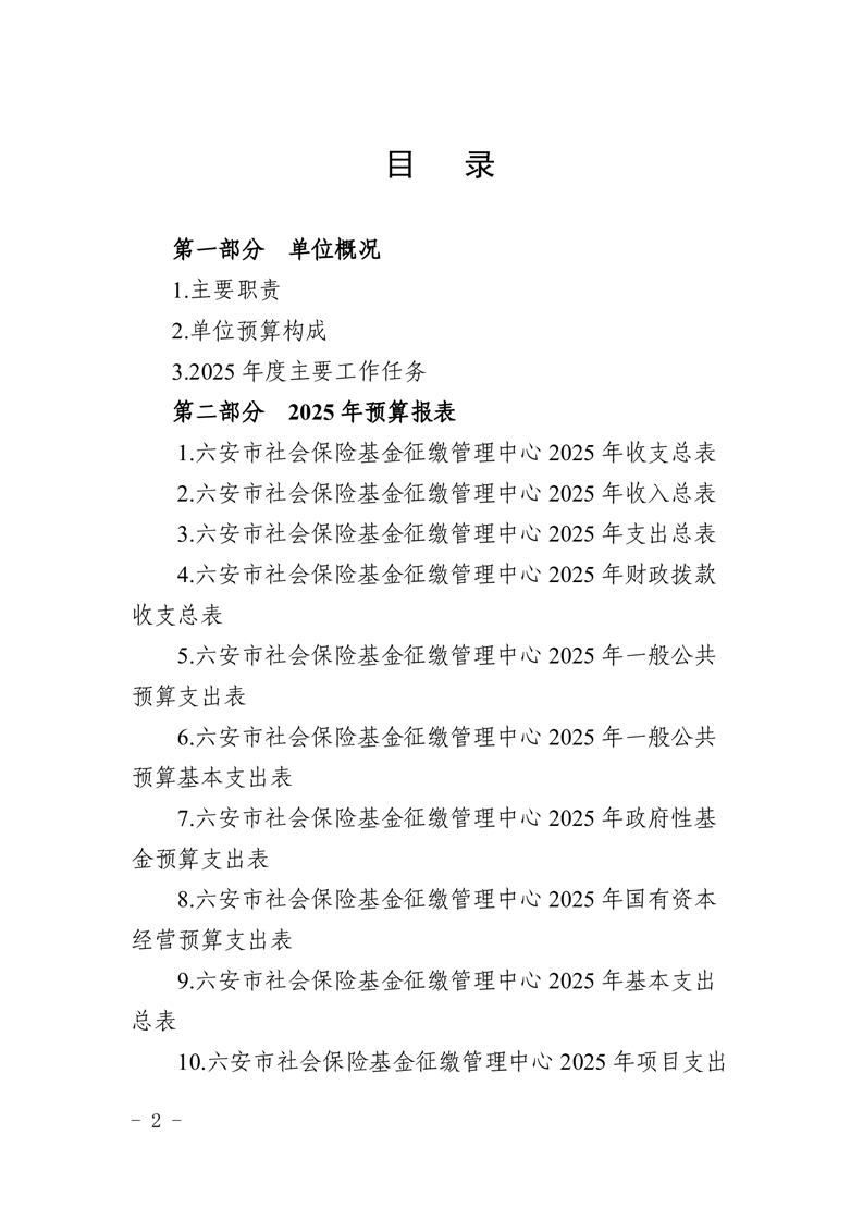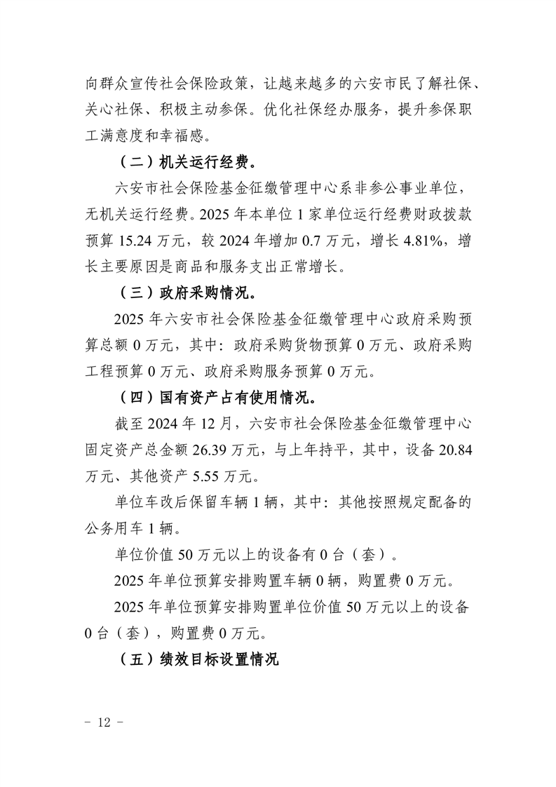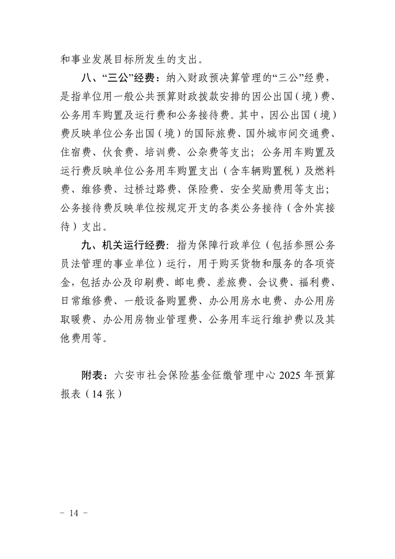 六安市社会保险基金征缴管理中心2025年单位预算公开