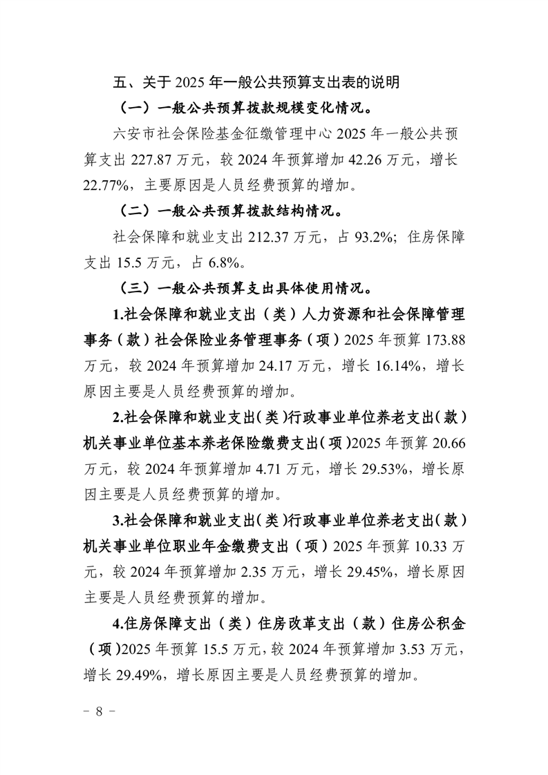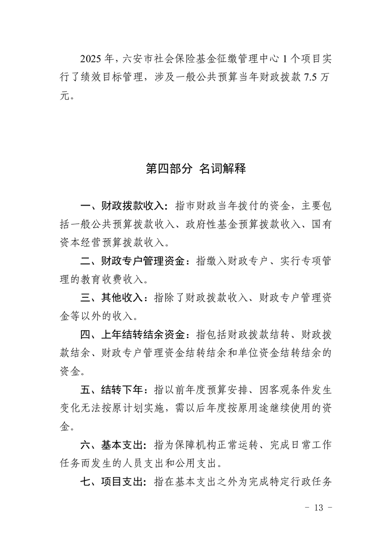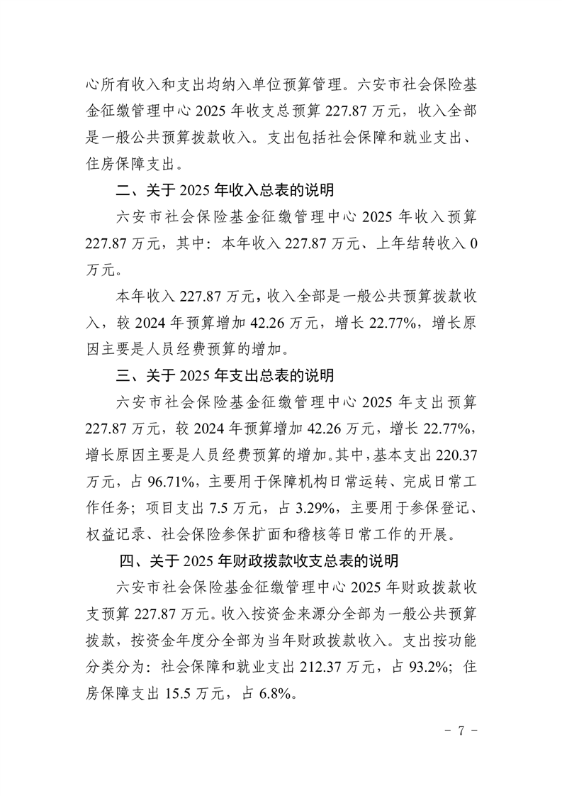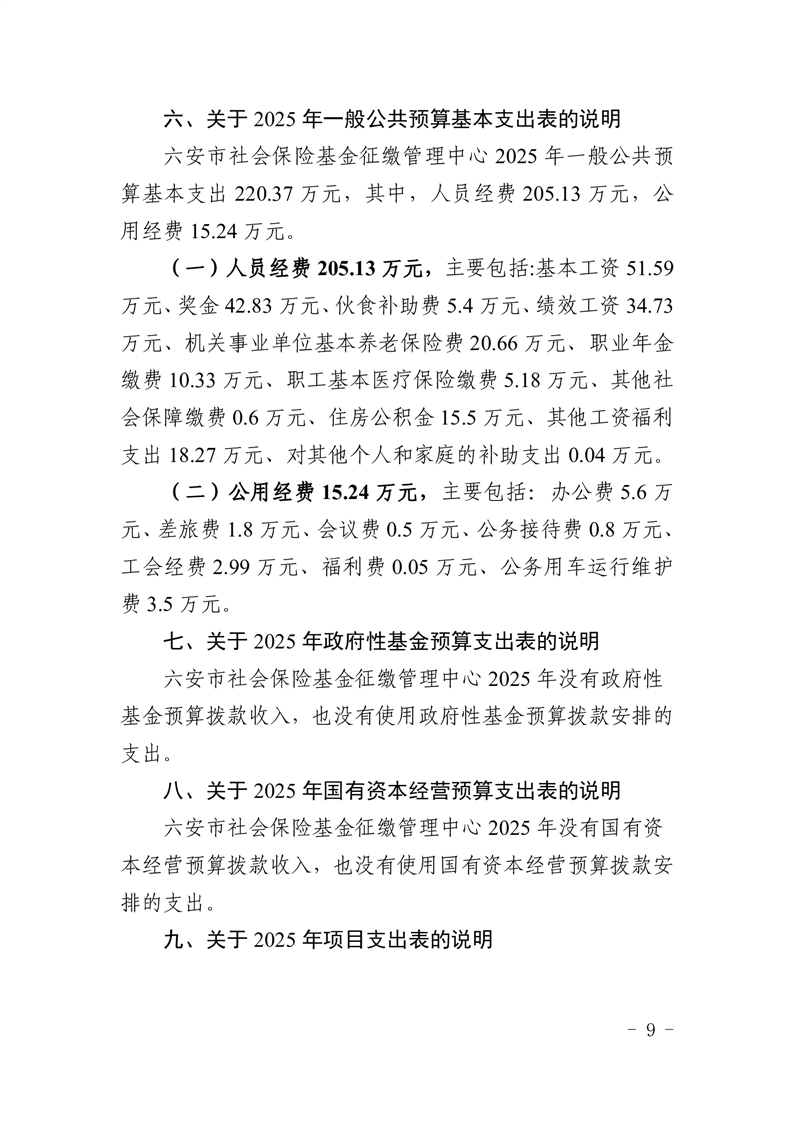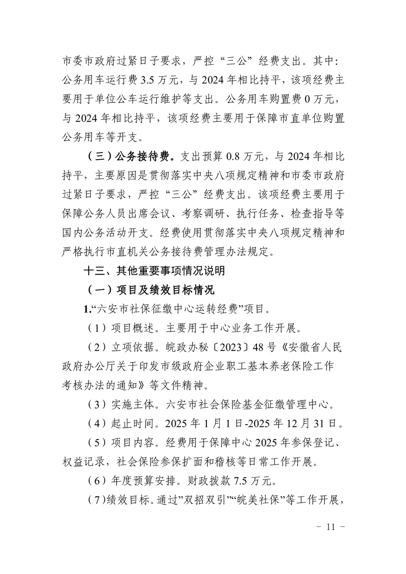 六安市社会保险基金征缴管理中心2025年单位预算公开