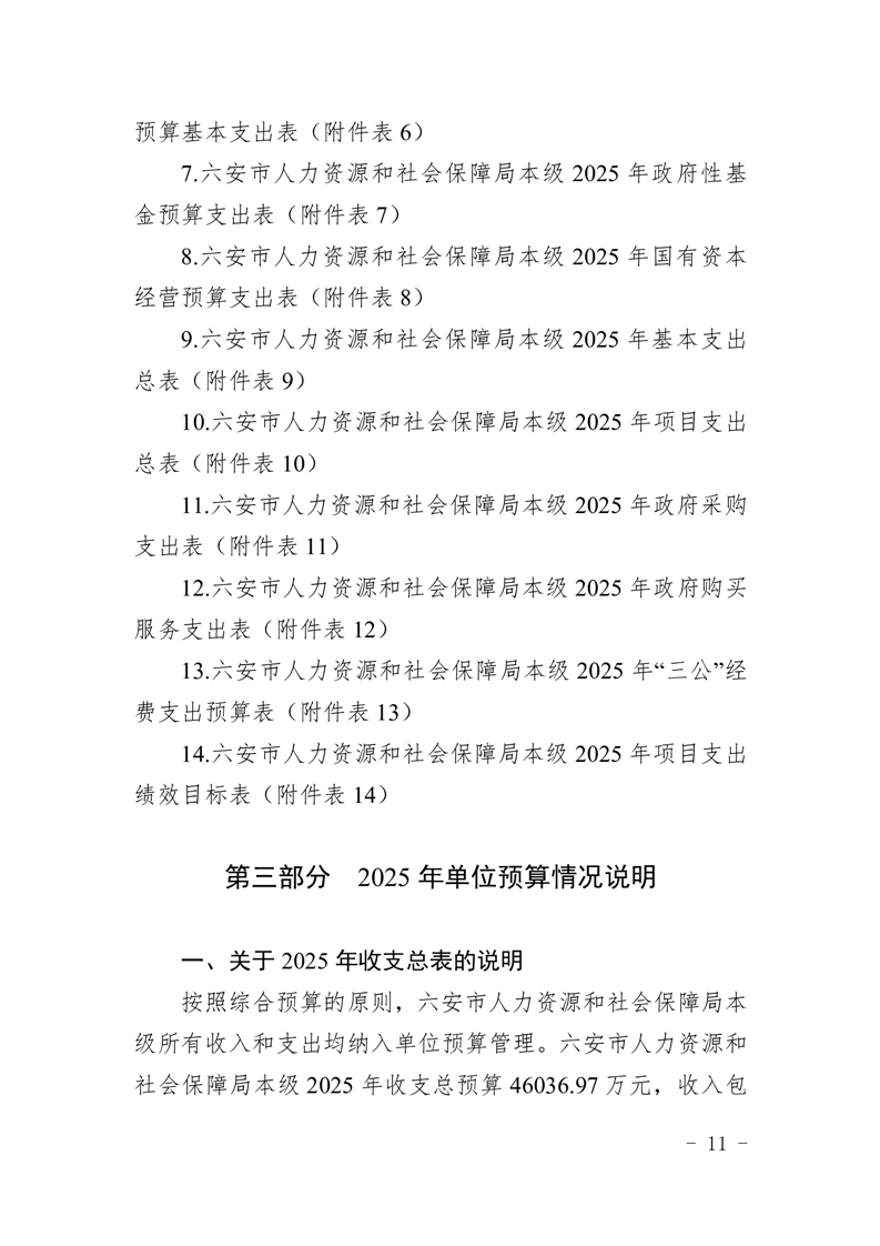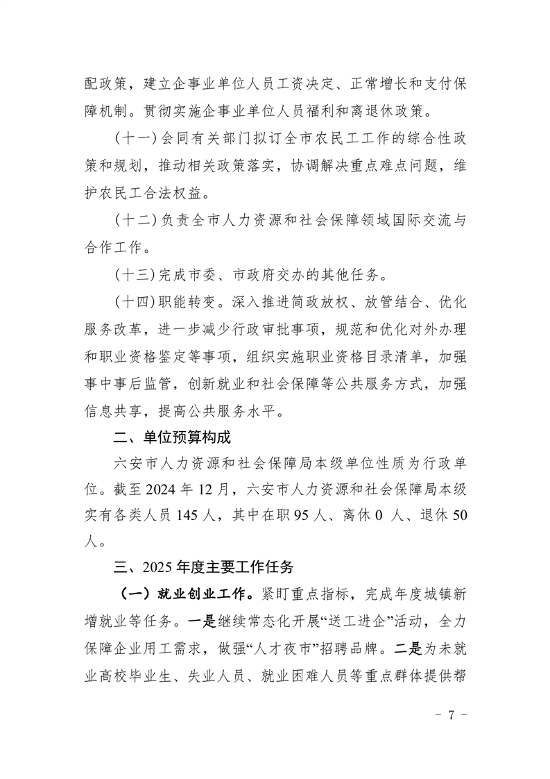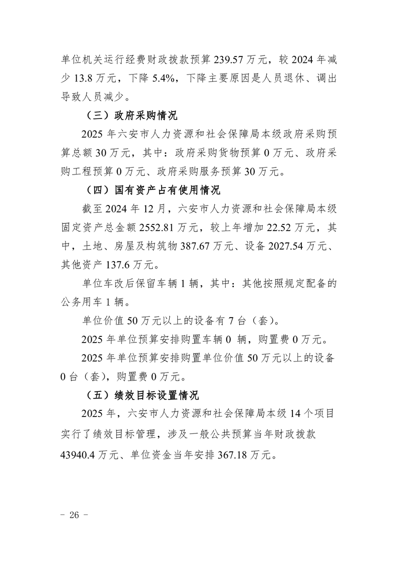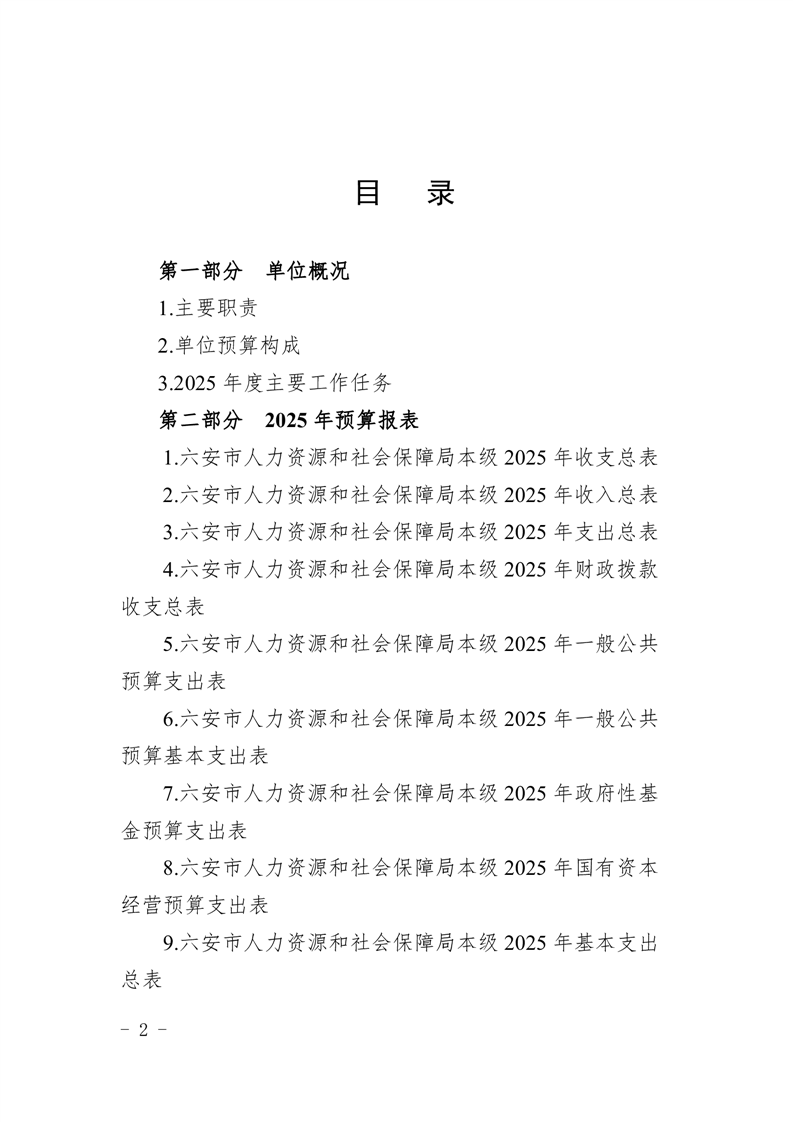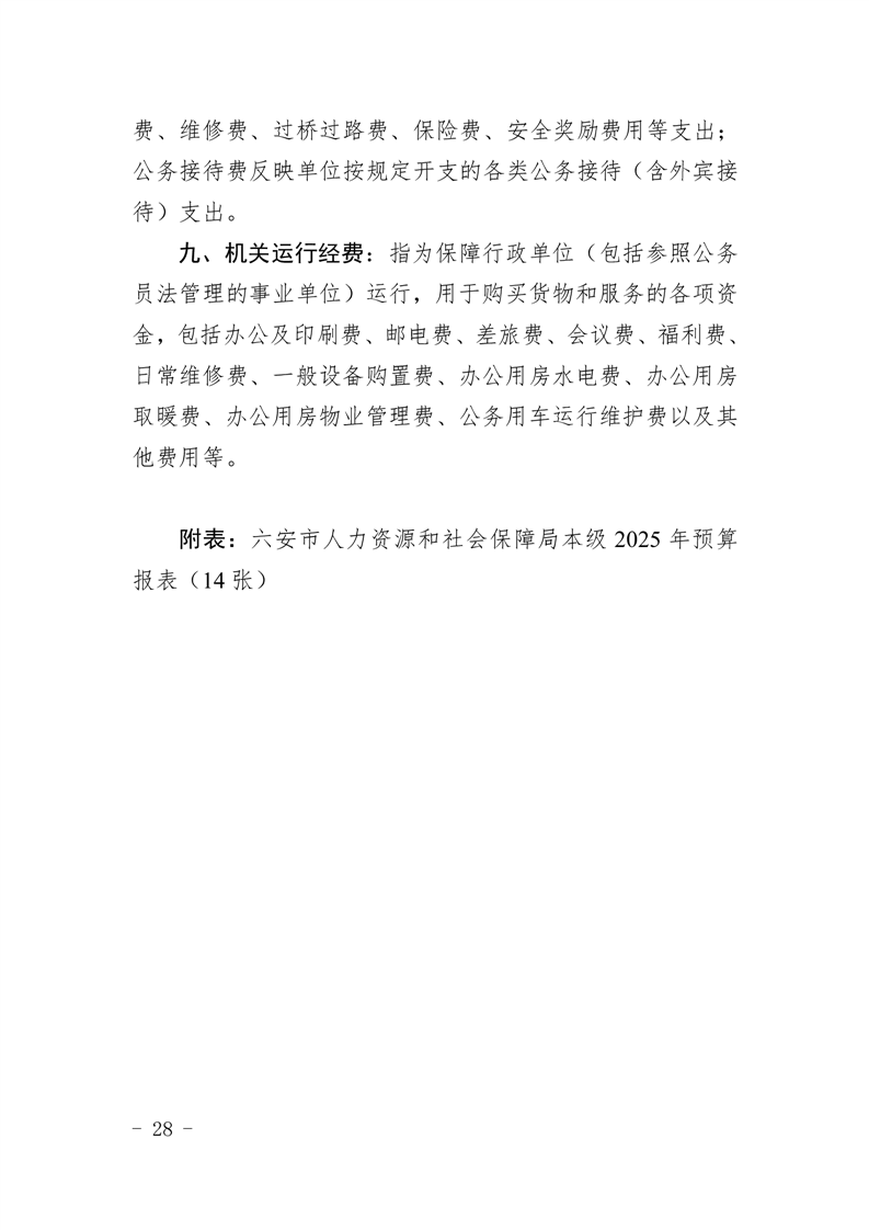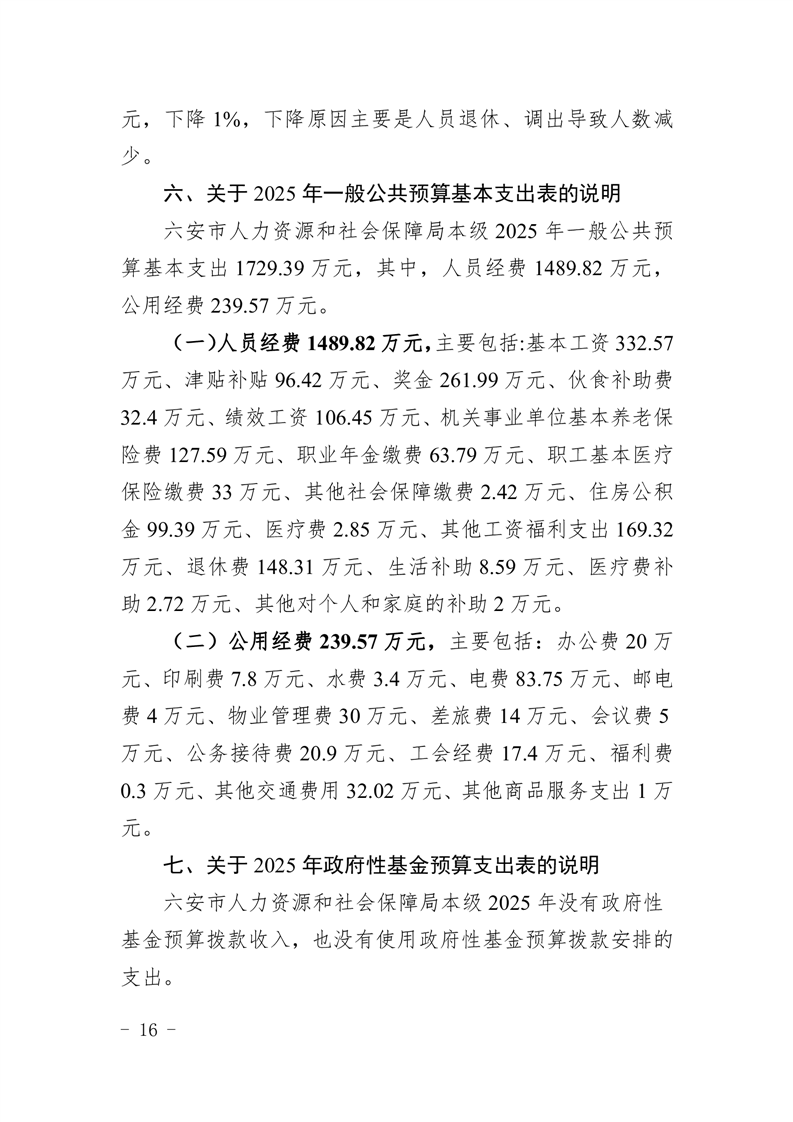 六安市人力资源和社会保障局本级2025年单位预算公开