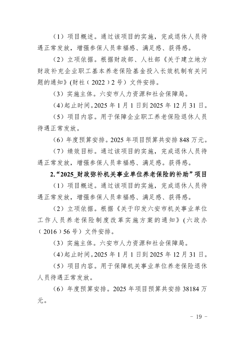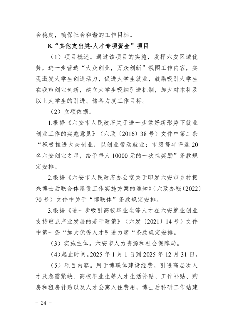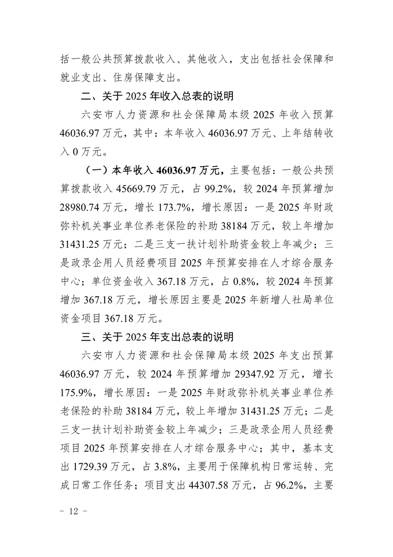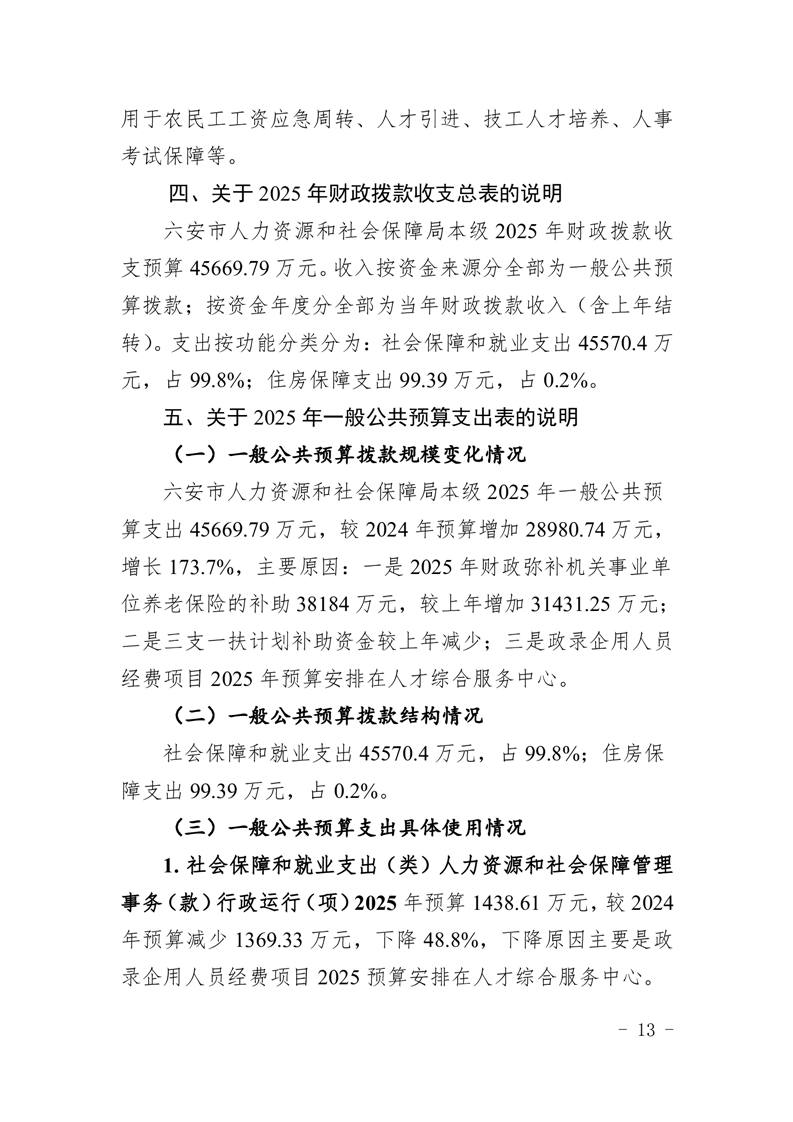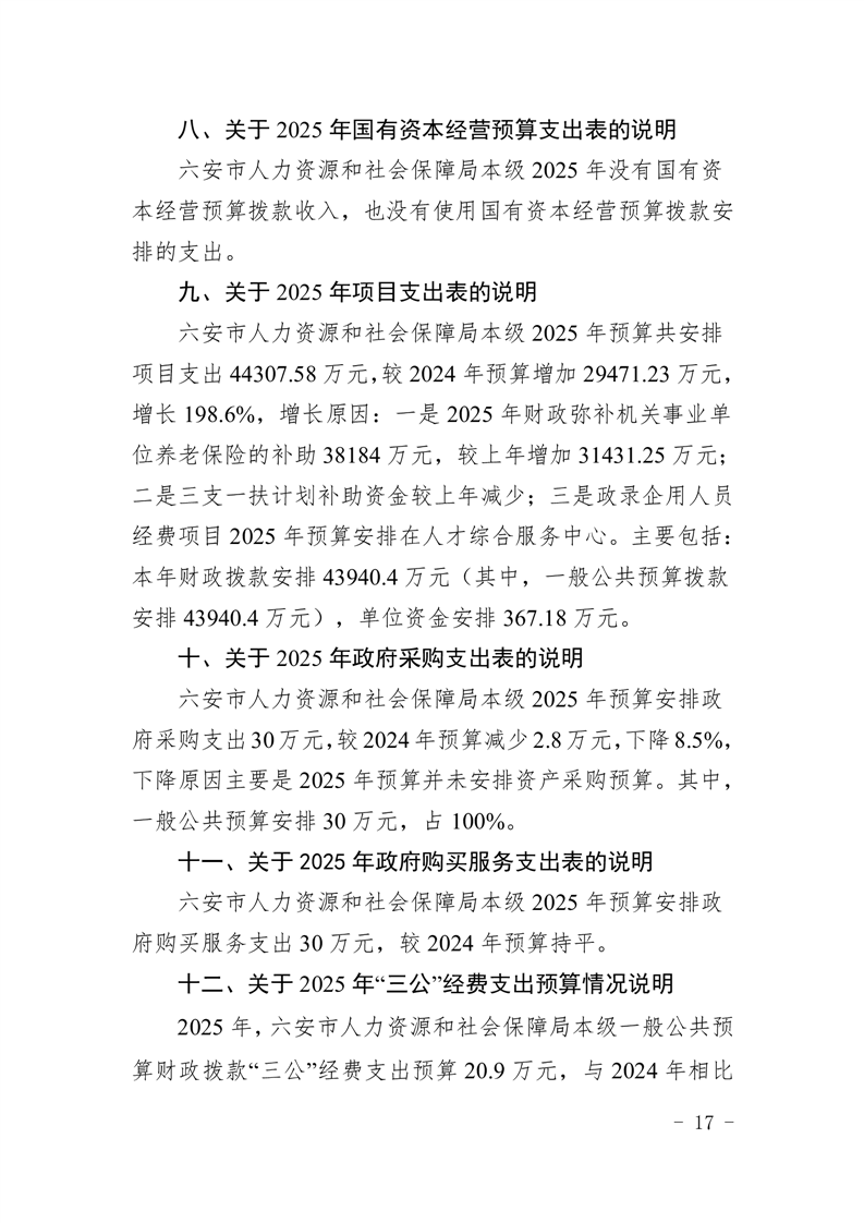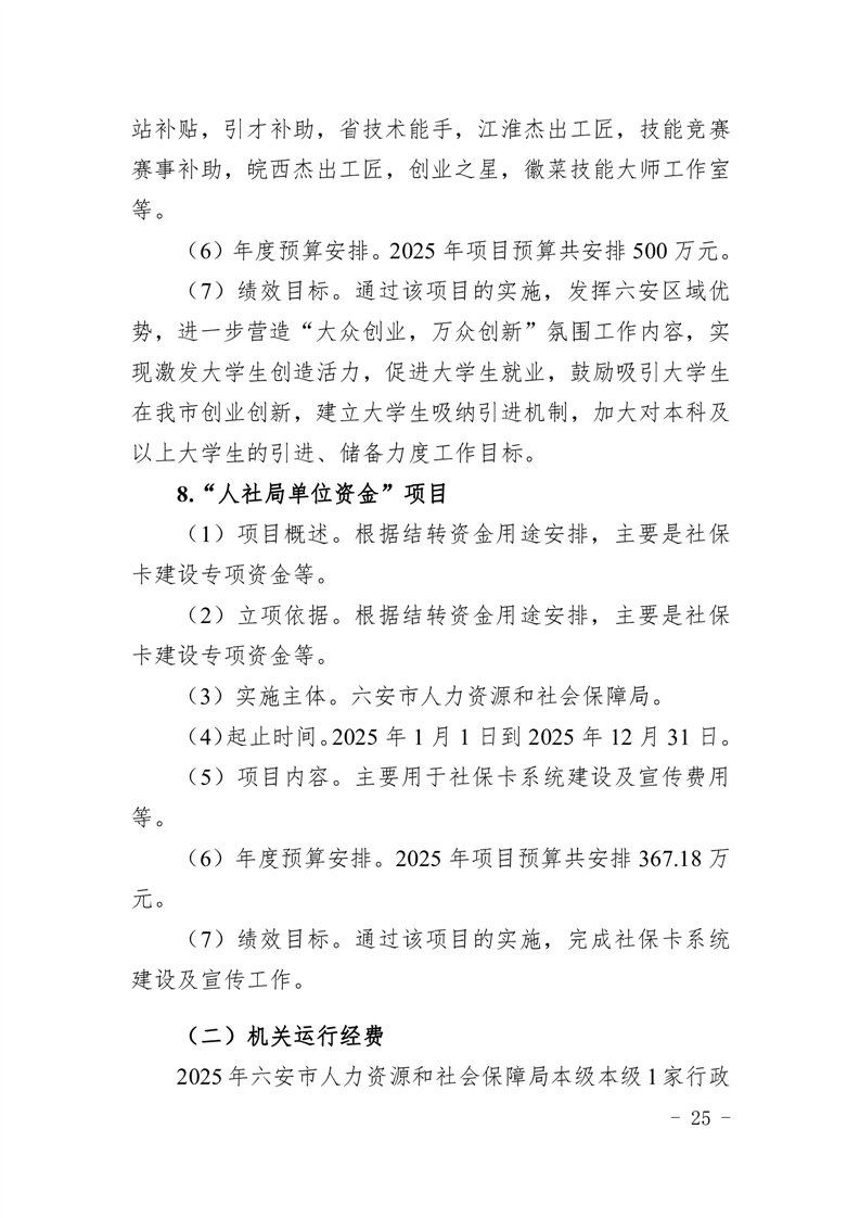 六安市人力资源和社会保障局本级2025年单位预算公开