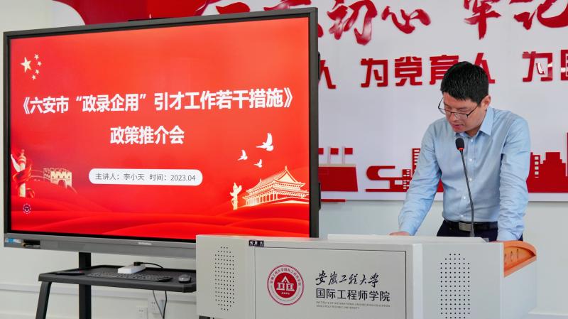 为着力解决企业人才需求,集聚更多优秀毕业生到六安就业创业,为我市主导产业发展和重点企业提供人才保障,4月20日,市人社局赴安徽工程大学开展2023年大中城市巡回招聘高校毕业生芜湖站暨“鸿雁人才”“政录企用”引才新政宣传推介会。市人社局党组成员、副局长李小天就引才新政进行宣传解读。