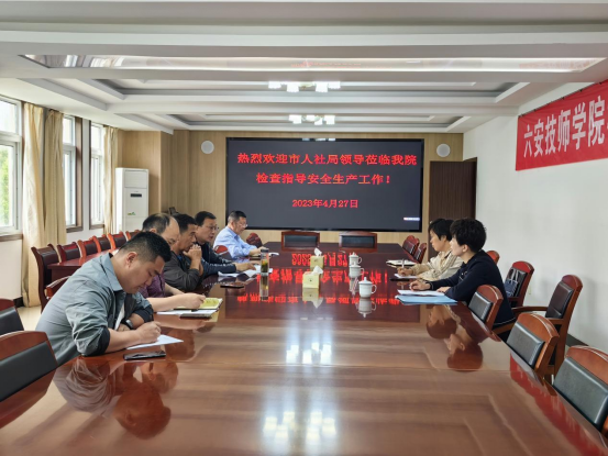 4月27日下午,市人社局职业能力建设科、教研室(鉴定中心)负责人赴六安技师学院开展校园安全检查,六安技师学院党委委员、副院长陈刚陪同检查。