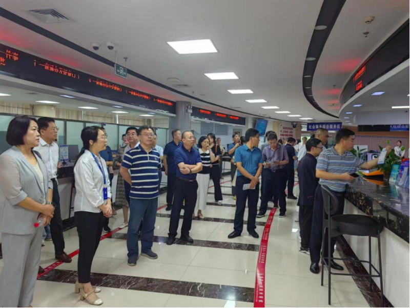 全省各市人社局分管负责人、社会保险经办机构负责人参观了六安市政务中心人社综合窗口、金安区人社政务服务大厅、城南镇梅花社区、徽商银行六安分行营业部、进行现场观摩六安人社的综合窗口建设、基层就近办、银行就近办等情况。