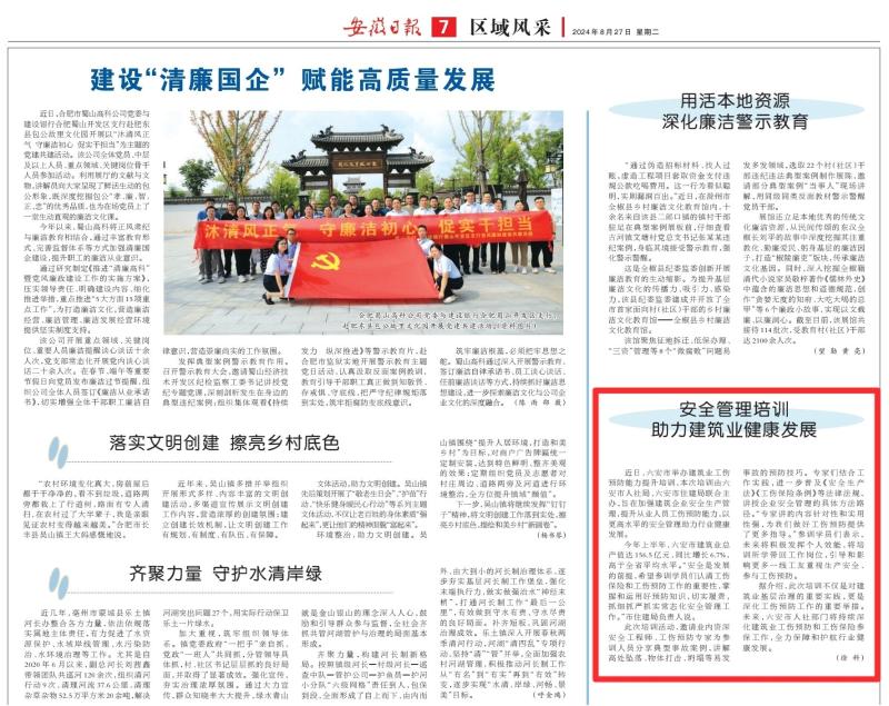 2024年8月27日,《安徽日报》报道我市工伤预防工作,全文如下: