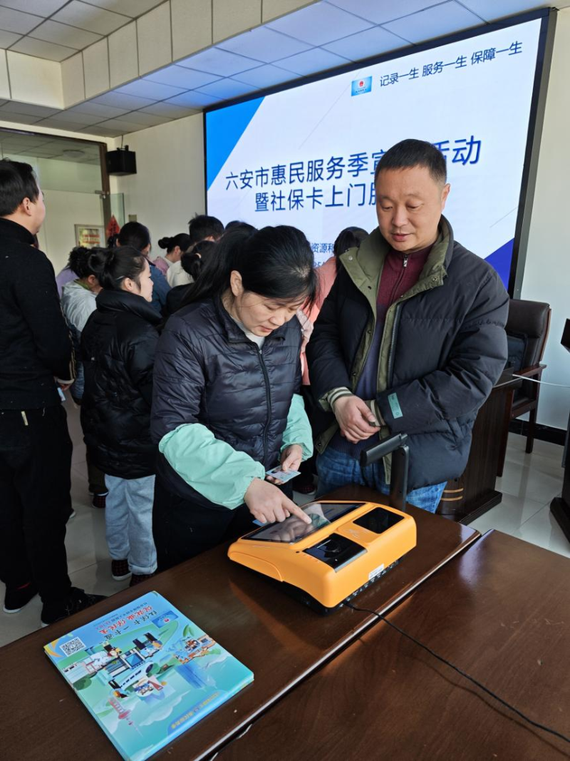这边社保卡办理工作有序推进,另一边工作人员同步开展“场景化”教学。他们紧密结合职工日常实际需求,着重演示电子社保卡绑定、居民服务“一件事一次办”等实用新功能。针对企业职工普遍关心的养老金新政、社保跨省转移等热点问题,服务团队还现场细致演示法定退休年龄计算器的使用方法。活动期间,工作人员解答群众咨询80余人次,发放400余份宣传材料,有效普及了社保相关知识。从江苏返乡的李红梅,在工作人员耐心指导下,借助电子社保卡APP,顺利完成苏州-六安两地养老保险账户的合并。系统实时显示出她13年零8个月的累计缴费年限,李红梅不禁感慨:“以前总担心换城市工作会在社保上吃亏,没想到现在用手机操作,短短3分钟就彻底解决了心头的忧虑。”此外,工作人员还指导数十位居民开通电子社保卡并办理业务,进一步提升了居民对电子社保卡的认知度和使用率。