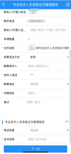 第四步:点击“掌上办”,送达方式选择“邮寄”,填写收件地址、收件人、联系电话。