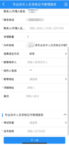 第四步:点击“掌上办”,送达方式选择“邮寄”,填写收件地址、收件人、联系电话。