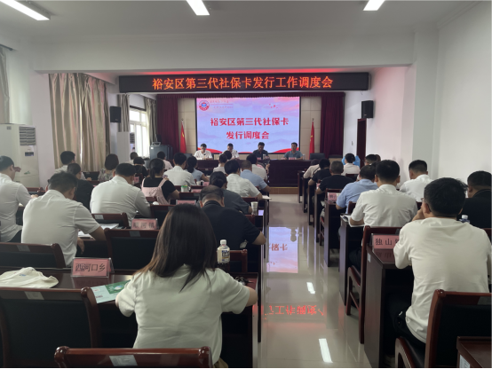 为促进第三代社保卡发行工作提质增效,近日,裕安区召开三代社保卡发行工作调度会。裕安区人社局分管领导、相关科室负责人、各乡镇街社保所所长、农商行工作人员等50余人参加会议。