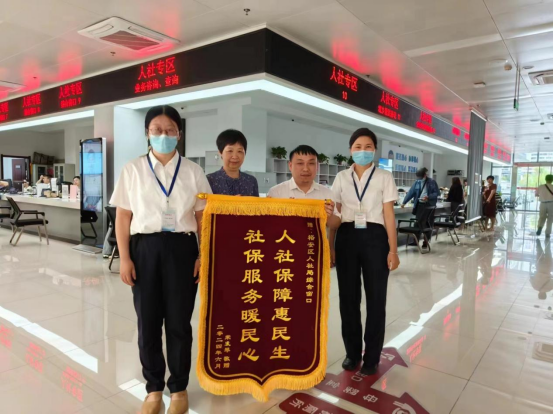 近日,裕安区人社局驻政务中心综合窗口收到荣女士送来的一面红彤彤的锦旗,上面印有“社保服务暖民心 人社保障惠民生”,表达了对人社窗口工作人员尽职尽责、心系群众的感激之情。